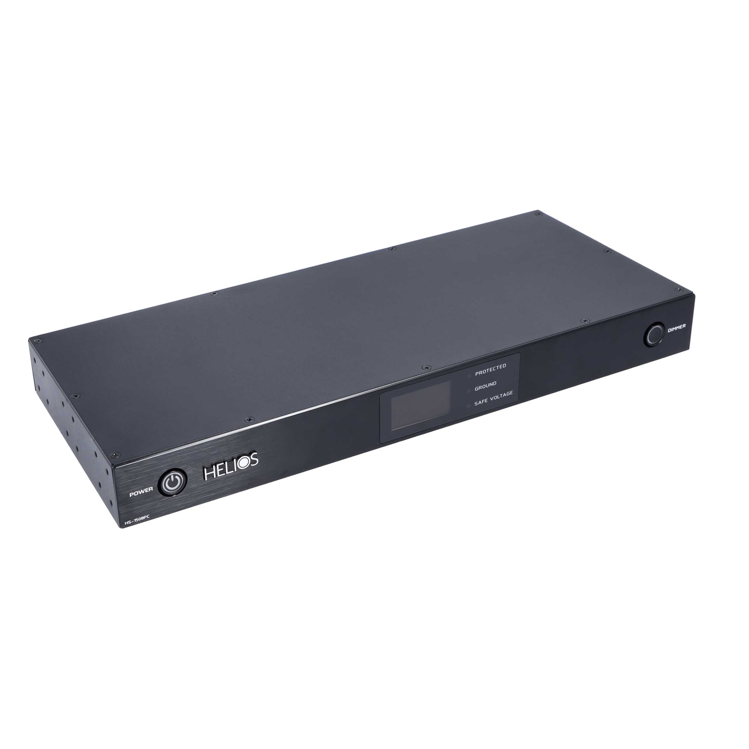 The HELIOS HS-1508PC revolutionizes rackmount power with non-sacrificial surge protection - no more degraded performance or sudden failures after a spike. This 1U powerhouse boasts 8 switched black outlets; 6 standard and 2 high-current outlet options for demanding gear. 70dB EMI/RFI noise filtering ensures pristine audio and video, while a display and intuitive LED indicators keep you informed. Plus, removable rack ears, rubber feet, and a right-angle power cord offer maximum flexibility.