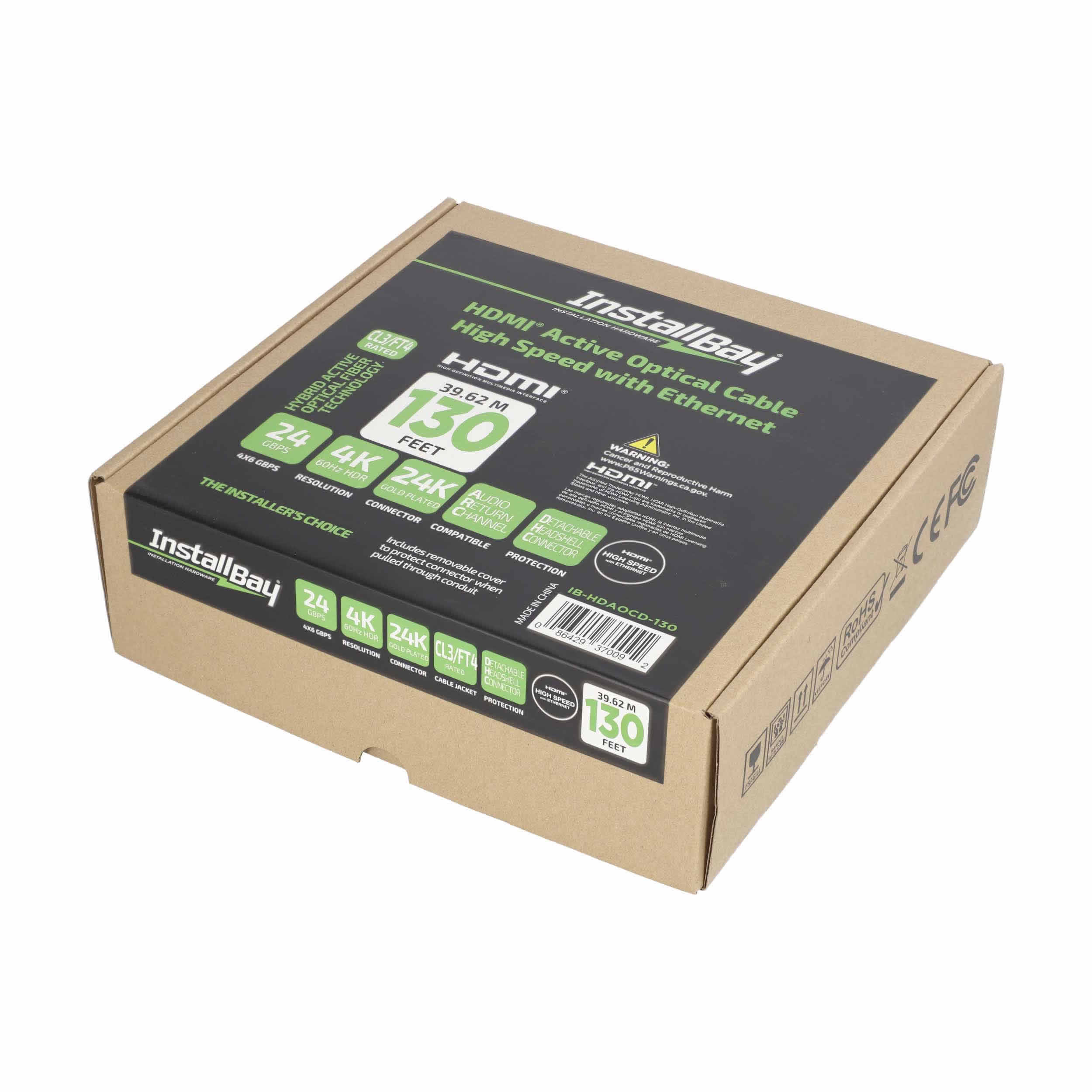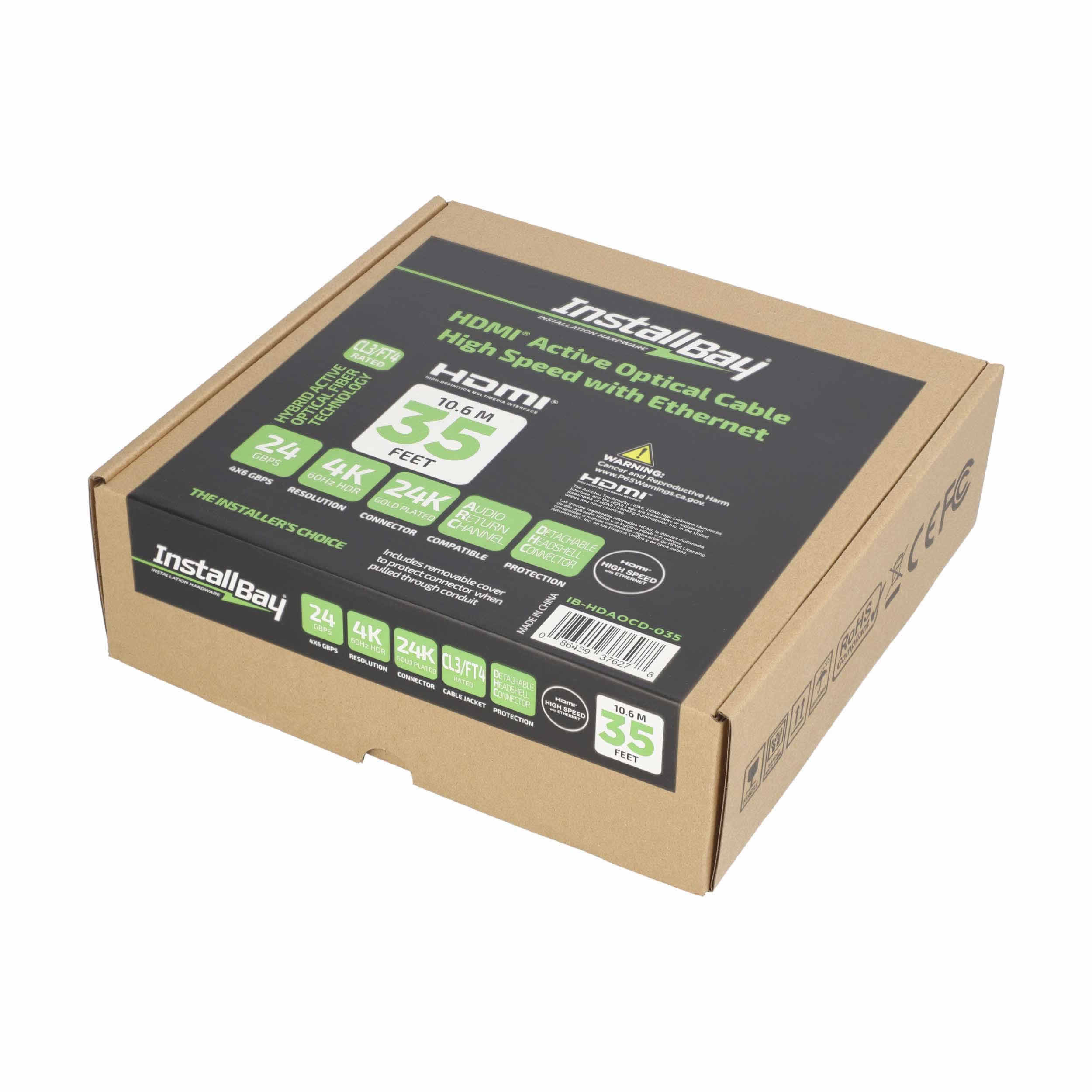 Install Bay Detachable Fiber High Speed HDMI(R) Cable With Ethernet, 4K, 24 Gbps